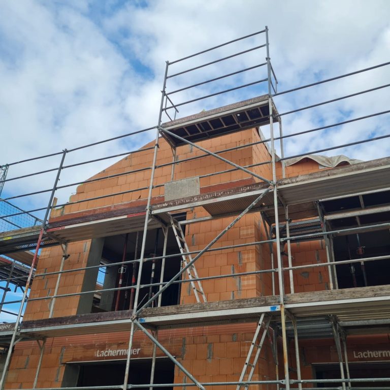 Nun wurden diese Woche die Giebelmauern gemauert, dann kann nun nächste Woche der Dachstuhl kommen!