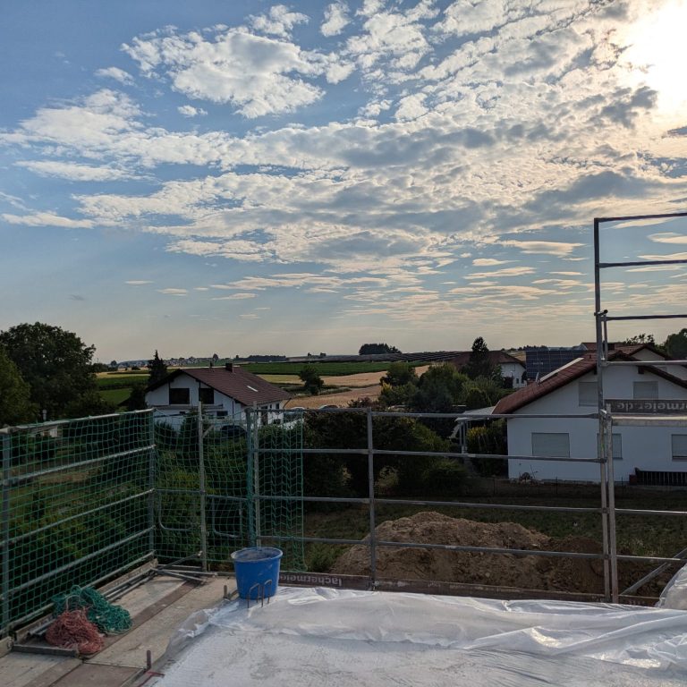 Diese Woche wurde die Decke über EG betoniert! Der Ausblick vom DG ist besser als gedacht. Da hätten wir doch noch eine Dachterrasse darauf setzen sollen. ;-)