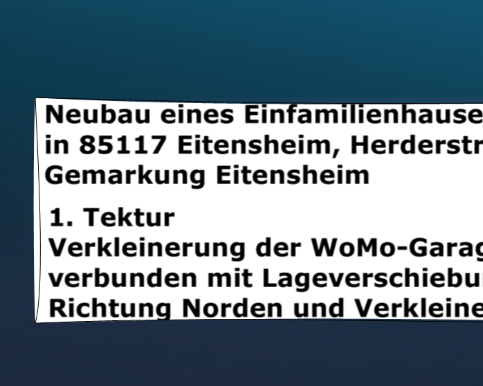 Die dickeren Ziegel und die Änderung der Stellplätze führen dazu, dass wir eine Änderung der Baugenehmigung benötigen (sogenannte Tektur).