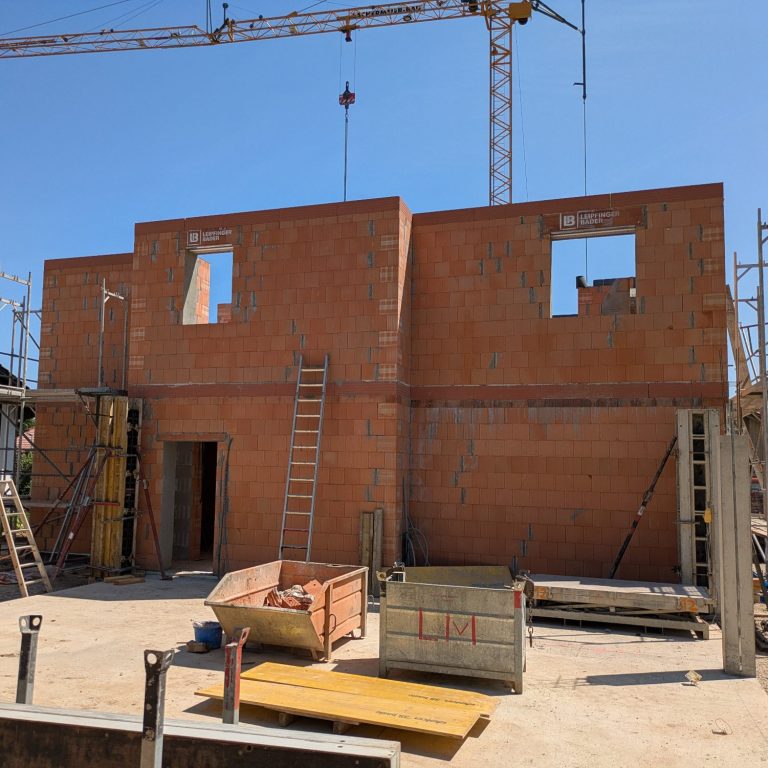 Wir haben uns nun dafür entschieden, das Gebäude nicht nur nach GEG sondern EH40 Standard zu bauen. Das bedeutet, wir benötigen etwas mehr Dämmung im Dach, unter der Bodenplatte und 42,5 cm statt 36,5 cm dicke Ziegel.